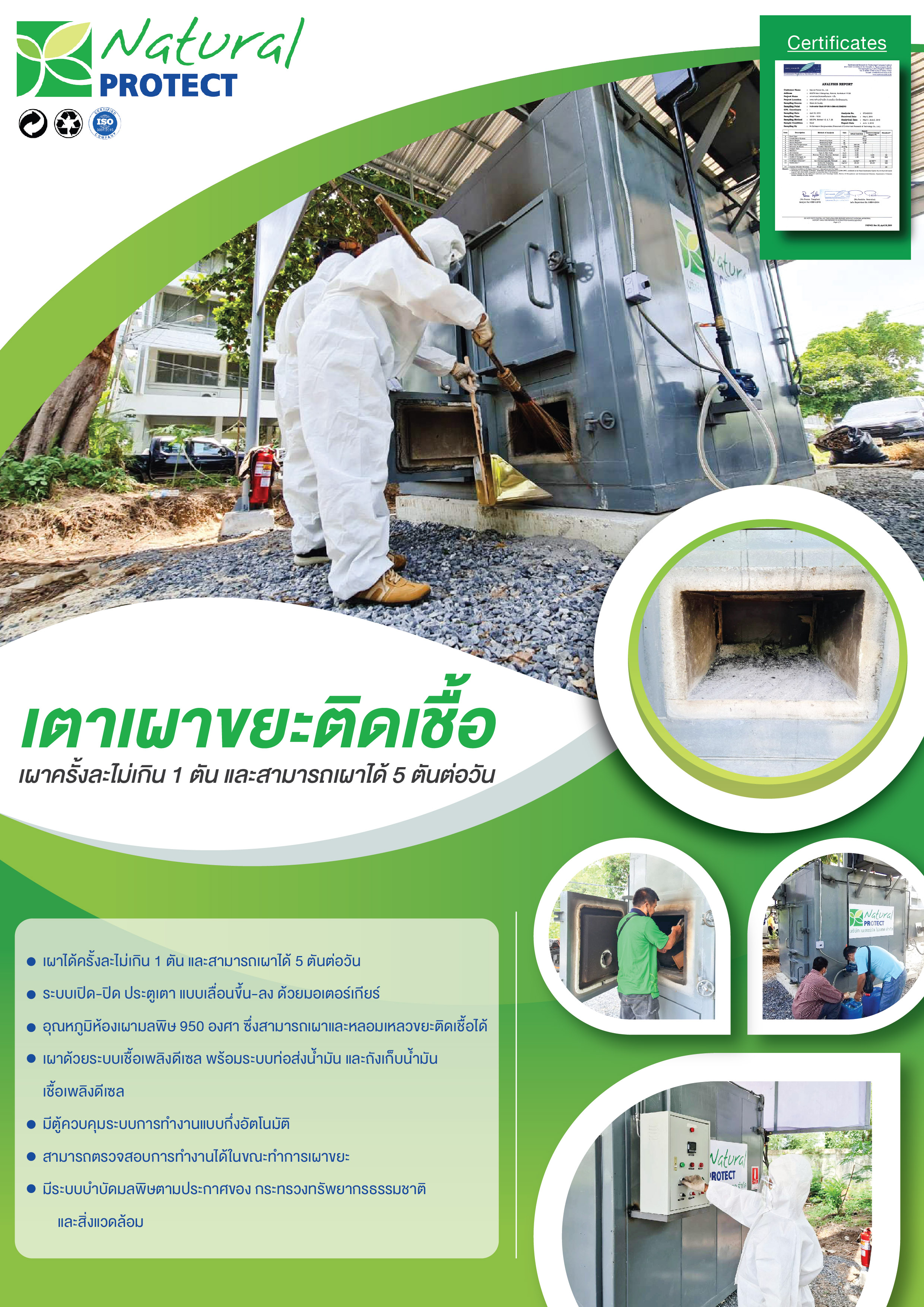 บริษัท เนเจอร์รัล โปรเทค จำกัด ได้ทำการคิดค้นนวัตกรรมเตาเผาขยะติดเชื้อที่จะช่วยกำจัดขยะพร้อมทั้งลดปริมาณของขยะในแต่ละวัน
